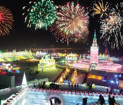 哈尔滨冰雪大世界夜景。 倪伟龄摄