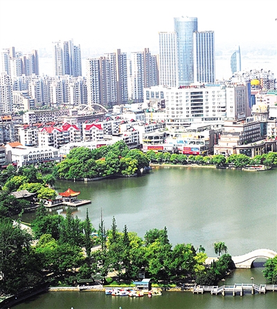 芜湖城区镜湖景观。在城市化建设中,安徽省突出强调生态文明,走出后发地区低碳环保、持续发展的新路子。 本报记者 白海星摄