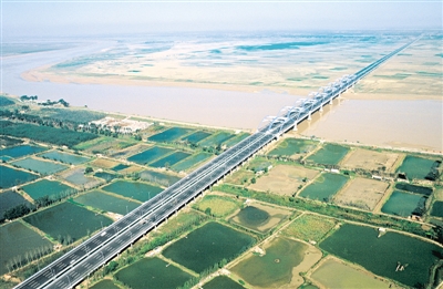 右图 郑州刘江黄河大桥鸟瞰。郑泰森摄