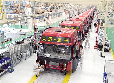 山西运城盐湖区空港新区大运汽车制造有限公司,工人正在总装线调试汽车。 (资料图片)