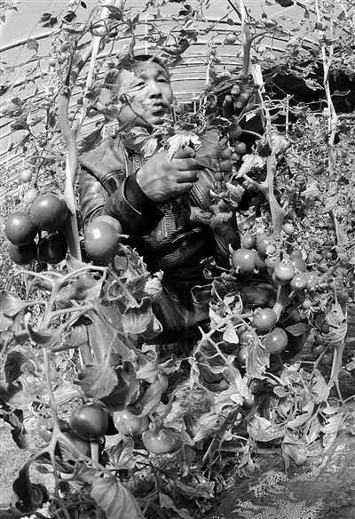 这是廊坊市安次区幽州小镇蔬菜基地,一名菜农在给西红柿整枝。近年来,河北省廊坊市安次区农业部门瞄准京津市场,引导农民种植绿色无公害蔬菜,取得了良好的经济效益。据了解,目前廊坊市安次区绿色无公害蔬菜种植面积已达16万亩,种植户每亩年纯收入达两万多元。 新华社记者 杨世尧摄
