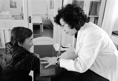 3月14日,陈艳梅在为老人量血压。“只要你拿出真心,就能换回患者的真爱。”黑龙江省齐齐哈尔市克山县克山镇城西村卫生所所长陈艳梅告诉记者。作为一名乡村医生,她真真切切地感受到了患者的肯定和尊重。 新华社记者 熊 琳摄