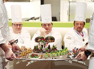 3月21日,在比利时首都布鲁塞尔,瑞士“厨神”制作的美食绚丽多彩。为期两天的2012欧洲“厨神”赛21日在布鲁塞尔落下帷幕,共有19个国家参赛。 新华社发