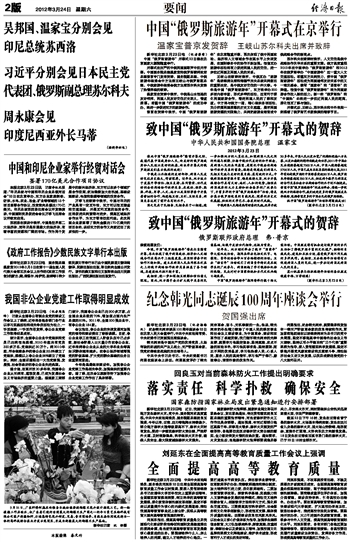致中国“俄罗斯旅游年”开幕式的贺辞