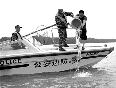 3月21日,广东中山边防支队开展“保护环境,爱我家园”活动,边防官兵和驻地群众来到横门水道红树林保护区水域放养鱼苗,清理水域垃圾,以此迎接世界水日。 杨定起 李松林摄