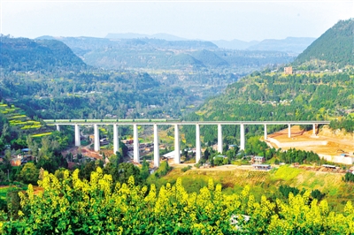 上图 3月24日,巴中至成都的旅客列车行驶在乐巴铁路吴家河大桥上。 曹 宁摄(新华社发)