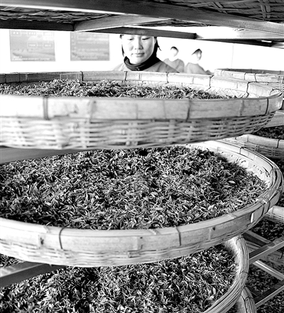 3月27日,工作人员在济南市长清区的一家茶叶加工厂内加工新茶。近年来,长清区结合当地山地多、靠近泰山山脉雨水充裕的自然条件,发展“南茶北移”,促进农民增收。目前,长清区有茶叶种植面积2000多亩,茶叶协会、农民专业合作社4家。 新华社记者 徐速绘摄