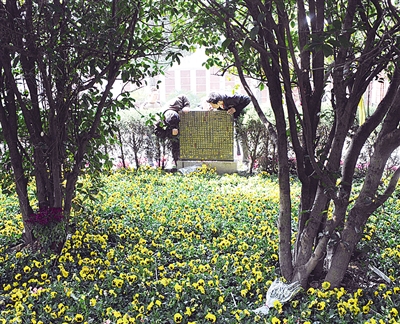 3月28日,市民在生态树葬区祭奠安眠于桂树下的亲人。当日,南京雨花功德园公墓推出生态树葬费用全免,以推广节地环保葬式。 新华社记者 孙 参摄