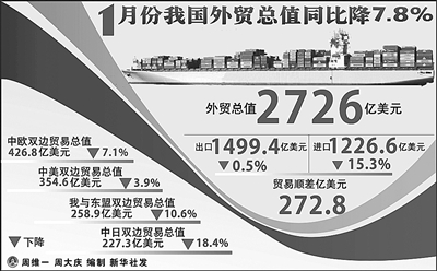 一是外需可能进一步下降。当前,由于世界经济下行压力加大,我们进出口面临的外部环境趋紧,总体形势仍然比较严峻。出口增长乏力,主要还是美欧日等主要贸易伙伴经济增长乏力,消费需求下降,失业率居高不下。统计数据表明,经过季节调整后,今年2月份我国进出口、出口的同比增长速度仅分别为7%和4%。