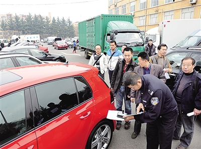 3月29日,青岛市车管所干警正检查来上牌照的机动车。山东省机动车保有量增长较快,去年该省机动车年增量超过100万辆,保有量超过2000万辆。 新华社记者 李紫恒摄