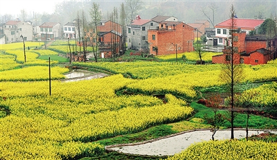 春意盎然的小山村(3月28日摄)。陕西省安康市汉阴县漩涡镇凤堰古梯田,金黄色的油菜花绽放,一派诗意梦幻般的田园。 新华社记者 陶 明摄