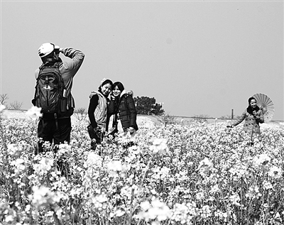 油菜花开了,一群游客正在江西省新干县界埠镇油菜基地拍照。 李福孙摄