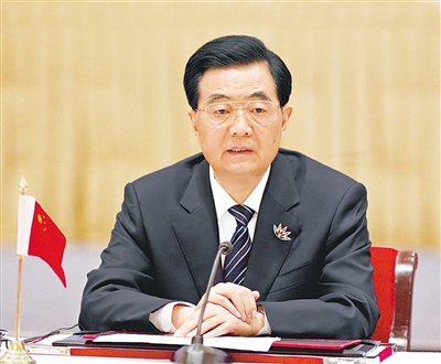 胡锦涛强调,中国将牢牢把握科学发展这个主题,始终不渝走和平发展道路,始终不渝奉行互利共赢的开放战略,在实现自身发展的同时致力于促进世界共同发展。中国坚定支持金砖国家合作,坚持同广大发展中国家风雨同舟、和衷共济