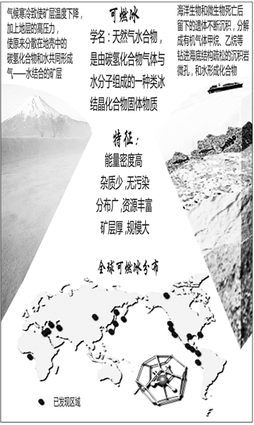 可燃冰能量密度非常高,是煤的10倍,具有使用方便、燃烧值高、清洁等特点,是近20年来在海洋和冻土带发现的最大新型洁净能源。更为重要的是,可燃冰储量巨大,相当于全球已探明石油、煤炭和天然气总量的两倍,因此被誉为未来最具有开发前景的战略资源之一。