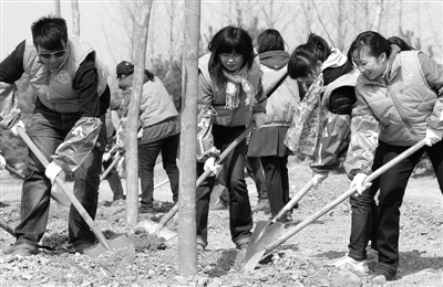 4月1日,600多名青年植树志愿者来到北京顺义天竺综合保税区,参加共建青年林活动。 今年,北京团市委实施青年先锋造林、百万青年植绿和爱我家园护绿等三项行动,将有800万名青少年参与增绿护绿活动。 本报记者 赵 晶摄