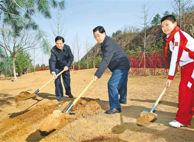 胡锦涛还对一起植树的北京市负责同志说,北京要真正成为首善之区,必须在绿化美化工作中走在前面。希望你们加快绿色北京建设步伐,全面提升城市环境质量,让生态文明建设成果更好地惠及全市人民。