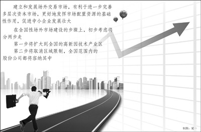 推进场外市场建设,不仅能有效解决广大中小企业金融服务难题,同时也有利于进一步完善我国多层次资本市场体系,提升资本市场服务实体经济的能力。随着相关建设提上议事日程,我国场外交易市场也呼之欲出。