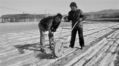3月30日,甘肃榆中县农技推广人员在该县小康营乡小康营村指导农民春耕播种。 本报记者 李琛奇摄