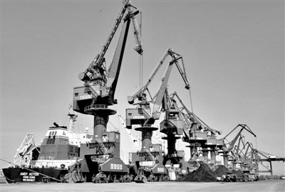 一艘轮船靠泊在曹妃甸港区通用码头卸货(4月6日摄)。记者从河北省交通厅获悉,今年一季度该省港口累计完成货物吞吐量1.85亿吨,同比增长6.3%。 新华社记者 杨世尧摄