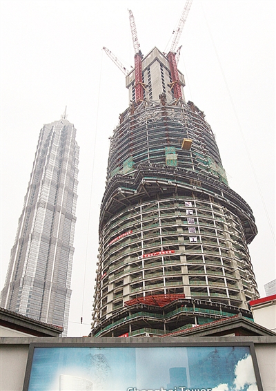 这是正在紧张施工中的上海中心大厦工地(2月20日摄)。上海中心大厦位于浦东小陆家嘴核心区,建成后将成为“上海第一高”。 新华社记者 裴 鑫摄