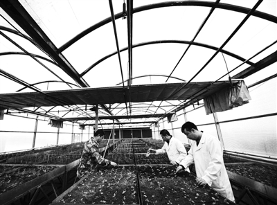 小土豆“滚出”大作为 4月8日,在黑龙江省北安市二井镇利民脱毒马铃薯合作社育种基地的智能温室中,工作人员在为原种除草。 黑龙江省北安市二井镇利民脱毒马铃薯合作社2008年组建以来,在脱毒马铃薯种薯繁育方面进行积极探索。合作社目前辐射北安市6个乡镇18个村,种植马铃薯2000亩,此外合作社还带动农户120户,种植马铃薯1800亩。合作社建立“合作社+科研院所+基地