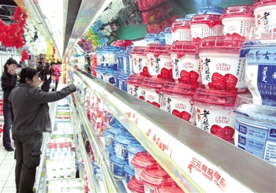 4月10日,市民在北京方庄附近的一家超市选购“老酸奶”。专家认为,老酸奶一般使用食用明胶作为增稠剂,品牌企业使用工业明胶代替食用明胶的可能性不大。中国农业大学食品学院营养与食品安全系副教授范志红表示,明胶是一种蛋白质,20年前的酸奶里就有,“只要是食用明胶,就不用担心”。 新华社记者 李 文摄