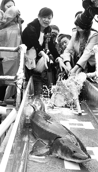 4月8日,1200多尾素有“水中大熊猫”之称的中华鲟在长江三峡大坝下游湖北宜昌被放流。这是我国今年首次在长江大规模放流全人工繁育的中华鲟。 (新华社发)