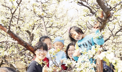 在山东滨州阳信县梨园风景区,万顷梨花竞相开放,吸引了大批游客前来观光。日前,中国滨州阳信第23届梨花会开幕,作为“中国鸭梨之乡”,阳信县鸭梨栽培面积达到20万亩,年产优质鸭梨20万吨。 本报记者 翟天雪摄
