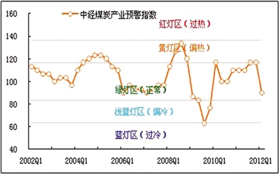 中经煤炭产业景气指数报告显示,2012年一季度中经煤炭产业景气指数为100.4点(2003年增长水平=100),比上季度下降2.7点;景气度虽呈现明显回调,但仍处于表示行业运行正常的“绿灯区”。中经煤炭产业预警指数为90.0点,比上季度下降26.7点。