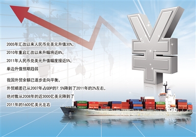 “按照这一新的标准,人民币汇率已经接近均衡。”李稻葵表示,由于加快经济结构的调整,我国外贸余额已逐步走向平衡,外贸顺差已从2007年占GDP的7.5%降到了2011年的2%左右,绝对数从2008年的近3000亿美元降到了2011年的1600亿美元左右。