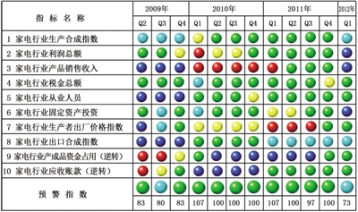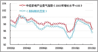 总体而言,我国经济基本面良好、城市化较快发展、家电消费升级等支撑家电产业发展的积极因素决定了家电行业中长期发展趋势依然良好。与此同时,政策边际效应递减、需求不足、生产成本上升、价格低迷、出口下滑等多种因素难以在短期内消除,有些因素的制约作用可能进一步强化,短期内家电行业的生产经营难有大的起色,平稳运行仍是主趋势,但也不排除稳中趋降的可能。经分析预测,中经家电产业景气指数可望在二季度趋于平稳,三季度有望小幅企稳回升,具体数值可能分别达到96.5点和96.7点。