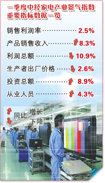 一季度,家电行业生产者出厂价格同比下降2.6%,降幅较上季度扩大1.4个百分点。在构成家电行业生产者出厂价格的2个指标中,电气机械及器材制造业工业品出厂价格同比下降2.1%;通信设备、计算机及其他电子设备制造业工业品出厂价格同比下降3.1%。家电行业生产者出厂价格持续低迷,表明家电产品消费需求趋于疲弱,将对未来企业生产经营效益产生不利影响。