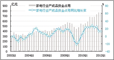 截止到一季度末,家电行业产成品资金占用为770.0亿元,同比增长13.1%,同比增速较上季度小幅收窄0.3个百分点,由于一些家电产品销售减少,库存水平处于历史高位,导致家电行业生产增速放缓,企业加大调整库存的预期有所增强。