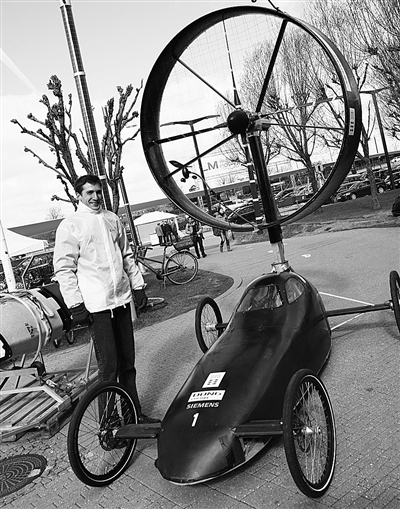 为期4天的欧洲风能协会2012年年会在丹麦首都哥本哈根贝拉中心举行,会议就风电产业的设计、生产、销售、项目合作和发展前景展开讨论,洽谈合作。图为展出的风力驱动车模型。 新华社发