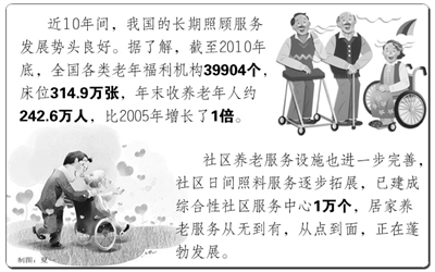 目前我国大约有3000多万名老年人需要不同形式的长期护理,5%的老年人有入住养老机构的愿望,但专为老年人提供服务的设施严重不足,远远不能满足需要。“‘未备先老’是对我国养老服务体系滞后于养老服务需求这一事实作出的概括,这一特点将伴随我国比较长的一个时期,更加说明了我们任重道远。”穆光宗教授呼吁,要实现有准备的老龄化。