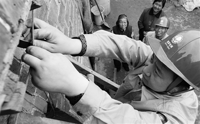 4月20日,河北邢台市南和县供电公司党员服务队员工在该县河郭乡南豆村78岁孤寡老人刁花云家帮助修整线路。 为进一步深化创先争优活动,该公司的9支党员服务队深入社区、乡村,以“结对子”形式为特困人群给予生活资助、义务帮扶。 赵永辉摄