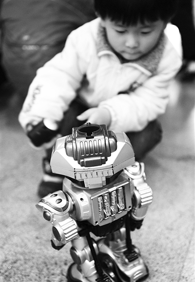 4月21日,一名小朋友操控智能型机器人进行表演。当日,一场机器人总动员互动科普展在连云港市博物馆举行,吸引了众多孩子前来体验。 耿玉和摄(新华社发)