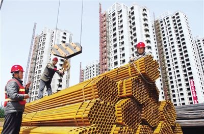 4月25日,在天津华城景苑保障房项目工地,工人在准备吊卸钢管。2012年,天津加快对保障性住房的建设力度,计划建设保障性住房905万平方米、10.5万套,帮助更多中低收入群众解决住房困难。 张超群摄(新华社发)