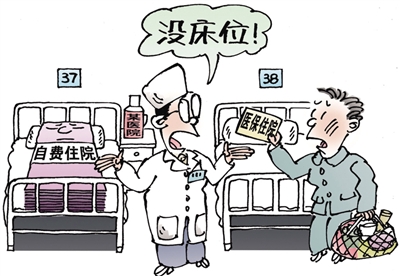 “是自费住院就有床位,职工医保住院就没床。”近日,河北保定曝出部分医院限收、拒收职工医保患者,而限收的原因,则是“医院科室有职工医保收治限额,如果‘花’超了,医务人员不得不自己垫付。” 蒋跃新作 新华社发
