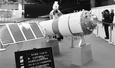 4月27日在中国航天圆梦科技展上拍摄的“天宫一号”目标飞行器。当日,中国航天圆梦科技展在济南高新区国际会展中心精彩亮相。此次航天科技展展品覆盖星、箭、船、器各个宇航产品门类,集中展示了运载火箭发射模拟和神舟飞船返回舱等真实物品,展出规模空前。 董乃德摄(新华社发)