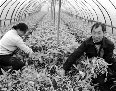 江西省永丰县佐龙乡邓勇生(右)等村民正在景辉叶菜专业合作社的绿色菜园里采摘空心菜。永丰县近年来围绕着产业增效、农民增收这个中心,大力推进“创新、创绿、创品牌”三创工程。如今该县蔬菜种植面积23万亩,总产量达41万吨,产值5.2亿元,绿色蔬菜和蔬菜加工产品畅销海内外。 新华社记者 宋振平摄