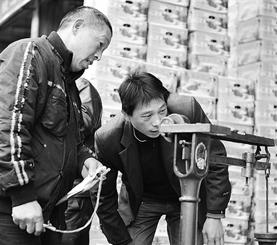 图为浙江省嘉兴市水果批发市场的一家水果店老板正在给水果商批发橙子。 嘉兴市水果批发市场是一家起步早,专业性强,集果品批发、包装、加工、运输、配送于一体的大型水果批发市场,南北水果云集市场,吸引了20多个省区市的鲜果货源,辐射浙江及江苏、安徽、江西、福建、上海等省市,年交易额20亿元以上,是华东地区水果集散中心市场之一,对带动当地经济发展起到