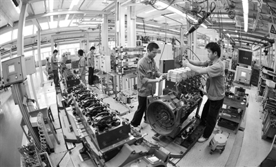 图为玉柴机器集团公司工人在冷加工厂区工作。