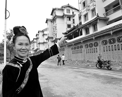 5月3日,贵州省黔东南苗族侗族自治州雷山县丹江镇苗族群众余文玉介绍刚刚搬进的西门社区保障住房。该州根据少数民族的生活习惯及住房特点,设计建造了具有苗族建筑风格的保障性住房。目前,全州保障住房已累计投入17亿元,建成1.3万套,有效解决了少数民族地区中低收入家庭的住房困难。 陈 军摄(新华社发)