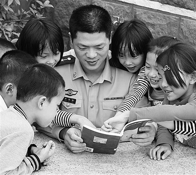 福建南安边防部队着力开展关爱辖区困难儿童工作,以“农家书屋”为平台,为困难儿童搭建起健康的学习基地。图为南安边防溪东派出所民警正在与孩子们进行交流。 谢建师摄