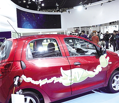 第十二届北京国际汽车展上,奇瑞汽车展台展示的纯电动车。 本报记者 赵 晶摄