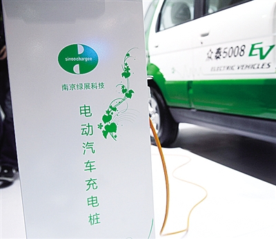 第十二届北京国际汽车展上,众泰汽车展示充电电桩技术。 本报记者 赵 晶摄