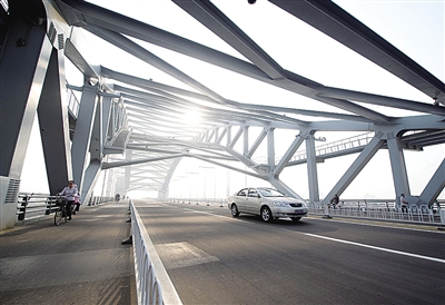 5月3日,车辆从通车的天津国泰桥上通行。当日,设置双向4条机动车道和两侧各1条非机动车道的天津国泰桥正式通车。至此,除去在建的春意桥和吉兆桥,天津海河上游(主要集中在市区)通车桥梁达到19座,呈现了“一桥一景”的天津海河风情。 新华社记者 岳月伟摄