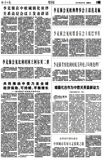 李克强在中欧城镇化伙伴 关系高层会议上发表讲话