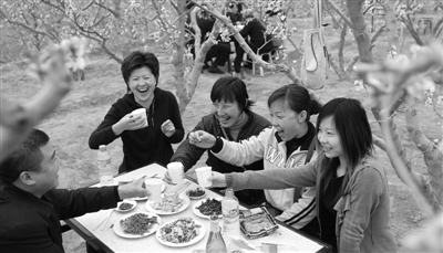 思路的转换引发了“农家乐效应”,一大批日出而作日落而息的山乡果农,转身成为桃花的经营者。山区桃农有的借机办起了农家乐,有的建起了停车场,有的卖起了草柳编、黑枣、野菜等土特产品,有的在设施大棚内搞起了桃、杏生态采摘,因此获得了一笔可观的收入。目前顺平旅游定点的农家乐有200余家。